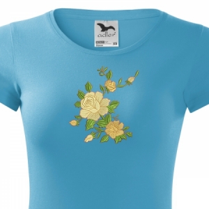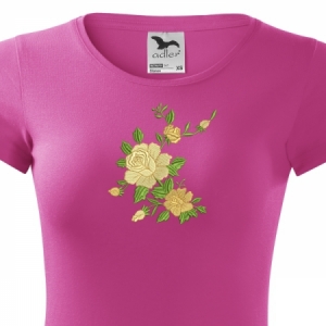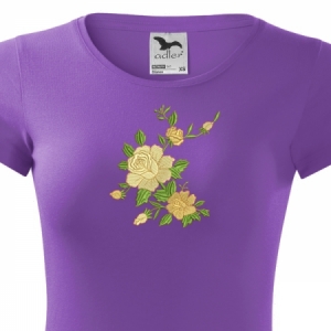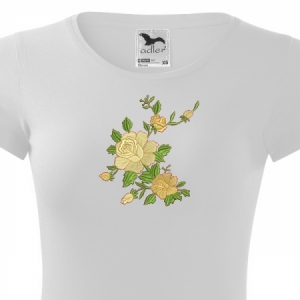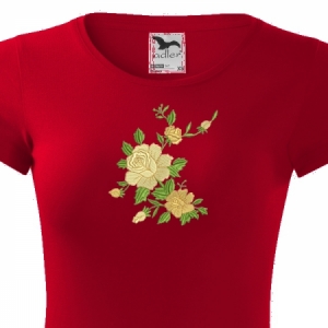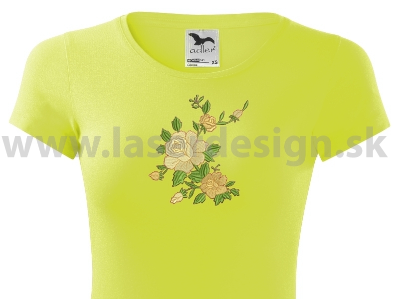Trendové dámske tričko ozdobené na prsiach aplikovanou výšivkou s rozmermi cca 140x125 mm. Upozorňujem zákazníkov na možnosť vyšitia vlastného motívu. Stačí ak nám napíšete na mailovú adresu vlado@laserdesign.sk alebo zatelefonujete na číslo: 0948 269 556. Určite sa dohodneme :-)