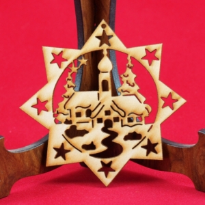 Rozmery cca 70x70 mm. Dekoratívna vianočná ozdoba z 3 mm hrubej topoľovej preglejky.